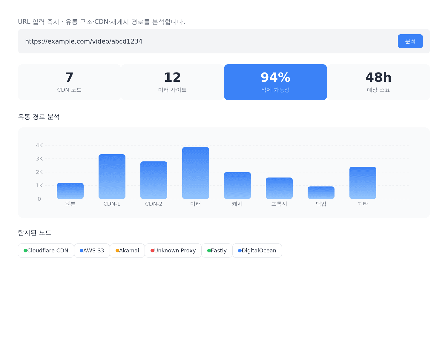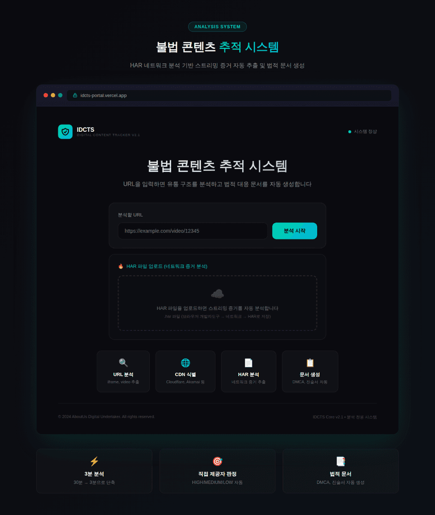 수작업으로는 놓치기 쉬운 CDN·스트리밍·재게시 경로까지 추적합니다.